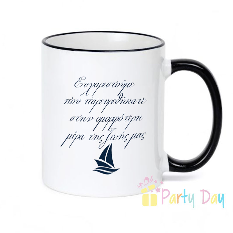 - Κούπα Λευκή για γάμο με Χρωματιστό Χείλος και Χερούλι κωδ. 2863