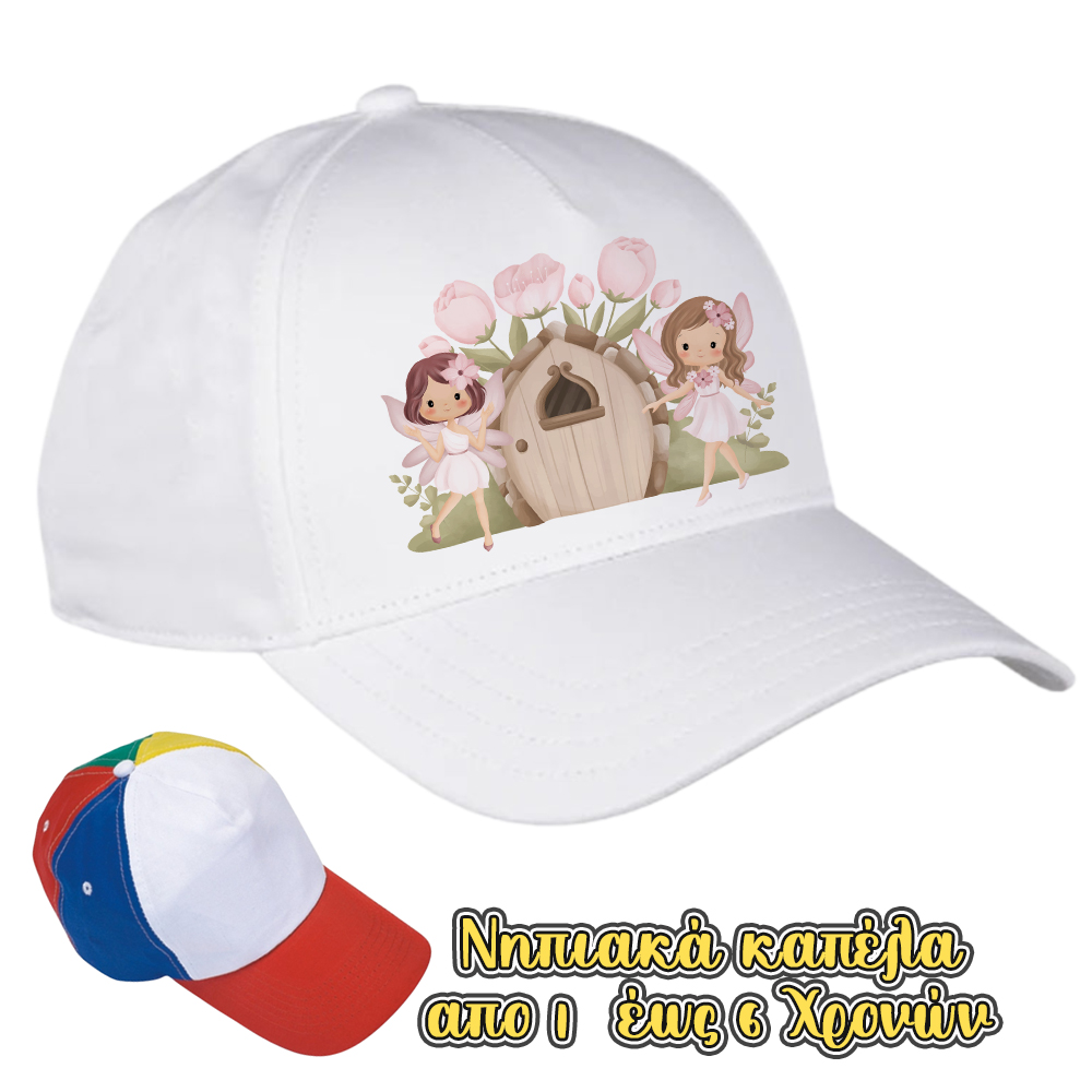 Καπέλα Λευκά με Γείσο Χρωματιστό. με Εκτύπωση κωδ.02542