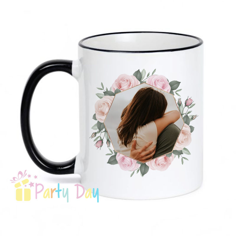 • Κούπα Λευκή για γάμο με  Χρωματιστό  Χείλος και Χερούλι  κωδ. 2863